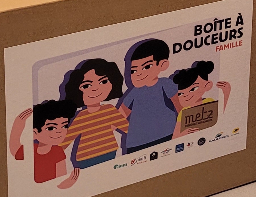 Comme l’année dernière, les boîtes à douceurs de l’association « Moselle Mécènes Solidaires » sont à votre disposition à l’accueil de la mairie. Ces boîtes peuvent être remplies, individuellement ou à plusieurs, contenir des confiseries, des produits de soin, des accessoires… et être retournées avant le 24 novembre en mairie. Elles seront ensuite distribuées à 6 associations locales (le Secours Populaire de Moselle, le Secours Catholique, la Fondation pour le Logement, le Mouvement du Nid, l’AMLI et l’AIEM). Il y a 3 types de boîtes selon le destinataire : femme, homme ou famille.